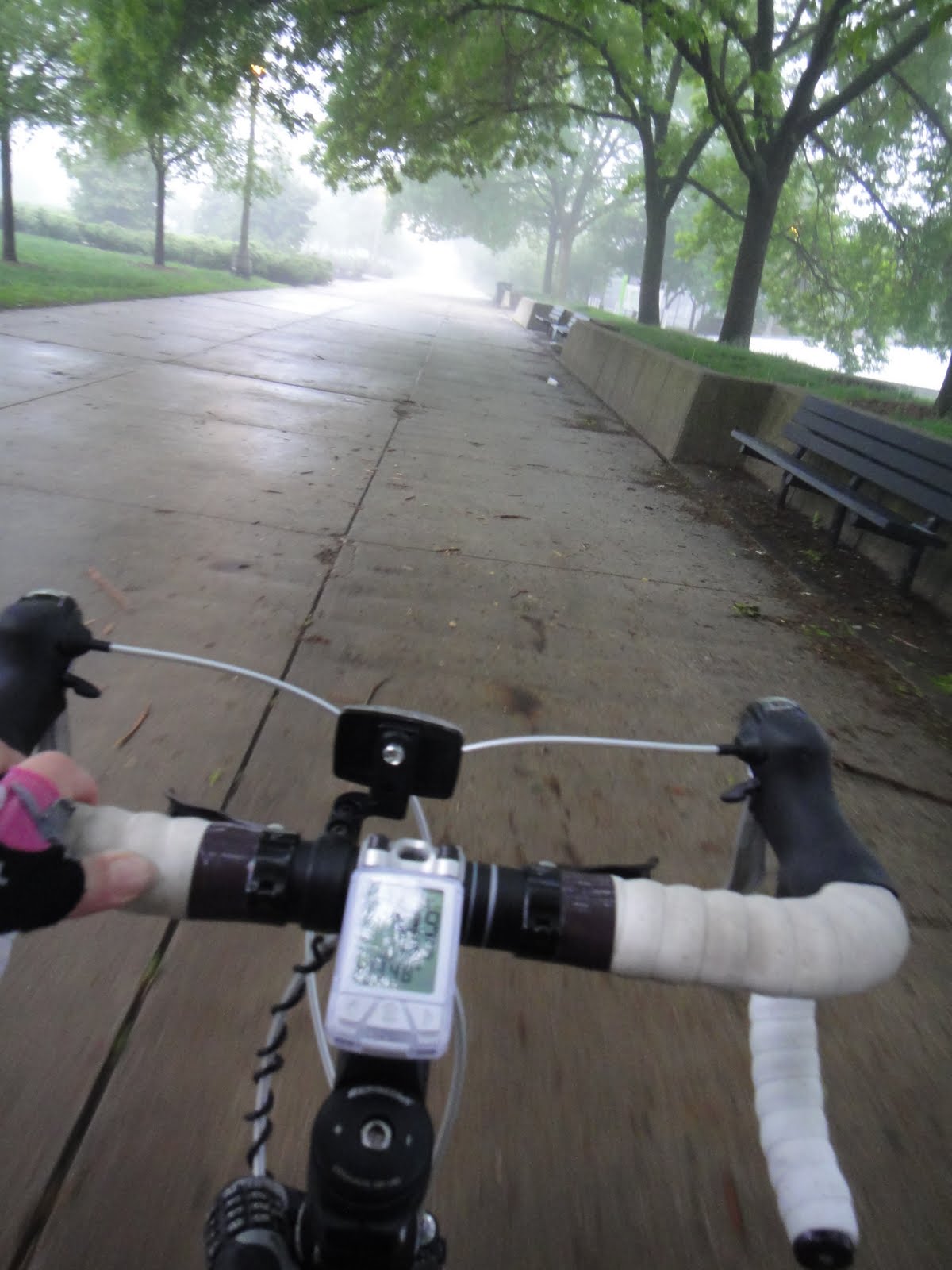 The first was Chicago’s Bike the Drive on May 29th, the Sunday of Memorial Day weekend. Organized by the Active Transportation Alliance, a group encouraging biking as transportation within the Chicago area. The ride offers the once a year opportunity to ride a bike along Lake Shore Drive. The 30 mile loop begins at Jackson, with the option of 1st heading south to the turn around at the Museum of Science and Industry or north to the turnaround at Hollywood. I love the views of the skyline and Lake Michigan, the museum campuses and harbors from a car along Lake Shore Drive and was quite excited to see these from my bike. Alas, this year, the weather did not cooperate. The city was fogged in with a slight mist all morning. Not sure I ever caught an actual glimpse of the lake…or even a true view of the skyline.