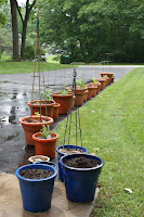 I use the largest pots I have for the tomatos, filling between them with the smaller herb pots. I’ll be sticking in nasturium and other small plants such parsley at the base of the tomatoes. Also need to rig up some kind of automatic drip irrigation system, but all and all good progress on the farm.