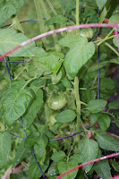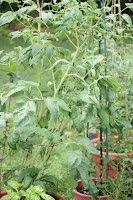 The blue/yellow container group by the driveway farm is beginning to fill in and look nice. And the driveway farm itself is rocking. The warm even hot days we’ve had the last couple of weeks have kicked the tomatoes into gear. Tons of flowers, and the beginnings of fruit.