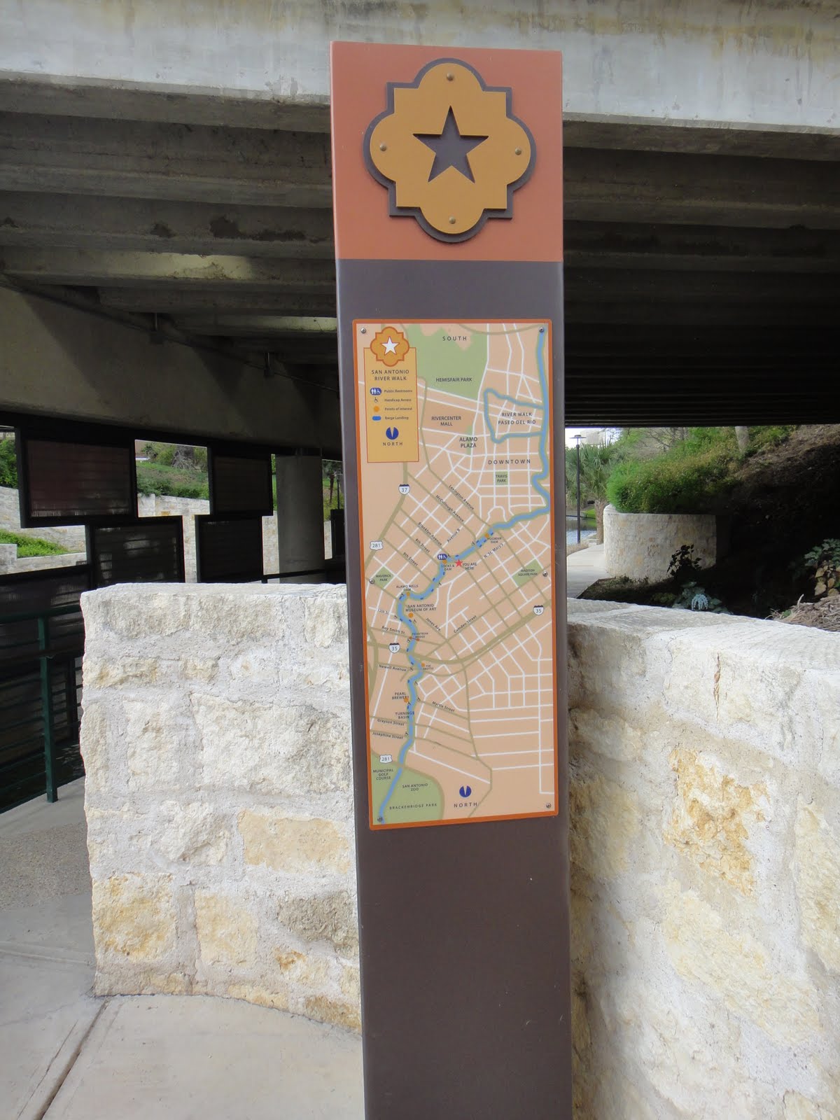 The city has done an incredible job of providing signage all along the Riverwalk – showing both explanations and locations of points of interest, and also mileage between them. On my last trip to the city, I focused my walks south to the King Williams area, this trip I headed north towards the Art Museum, covering about 2 miles of the river.