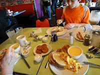 Last time we were at this fun and eclectic (not to mention yummy) restaurant was to celebrate Kiddo’s 1st birthday. He’s now 11. It’s been a while. First discovered when I was working for a wine & spirit distributor in Kentucky. Occasionally had lunches there with customers, or bites with co-workers when I was in town for a meeting. When we moved to Louisville, we discovered how great a place it is for brunch. Bobby Flay did a Throwdown with Lynn. (WTF, my second Bobby Flay mention in two days, and I’m seriously not *that* big of a fan)