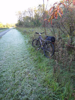 Finally, 15 months after thinking I should bike commute to work, I finally am doing it. And loving it – esp. this one section of the route. It’s beautiful with or without the frost. Love the asters, the solidago, can’t wait to see this small bit of wildflowers in other seasons.